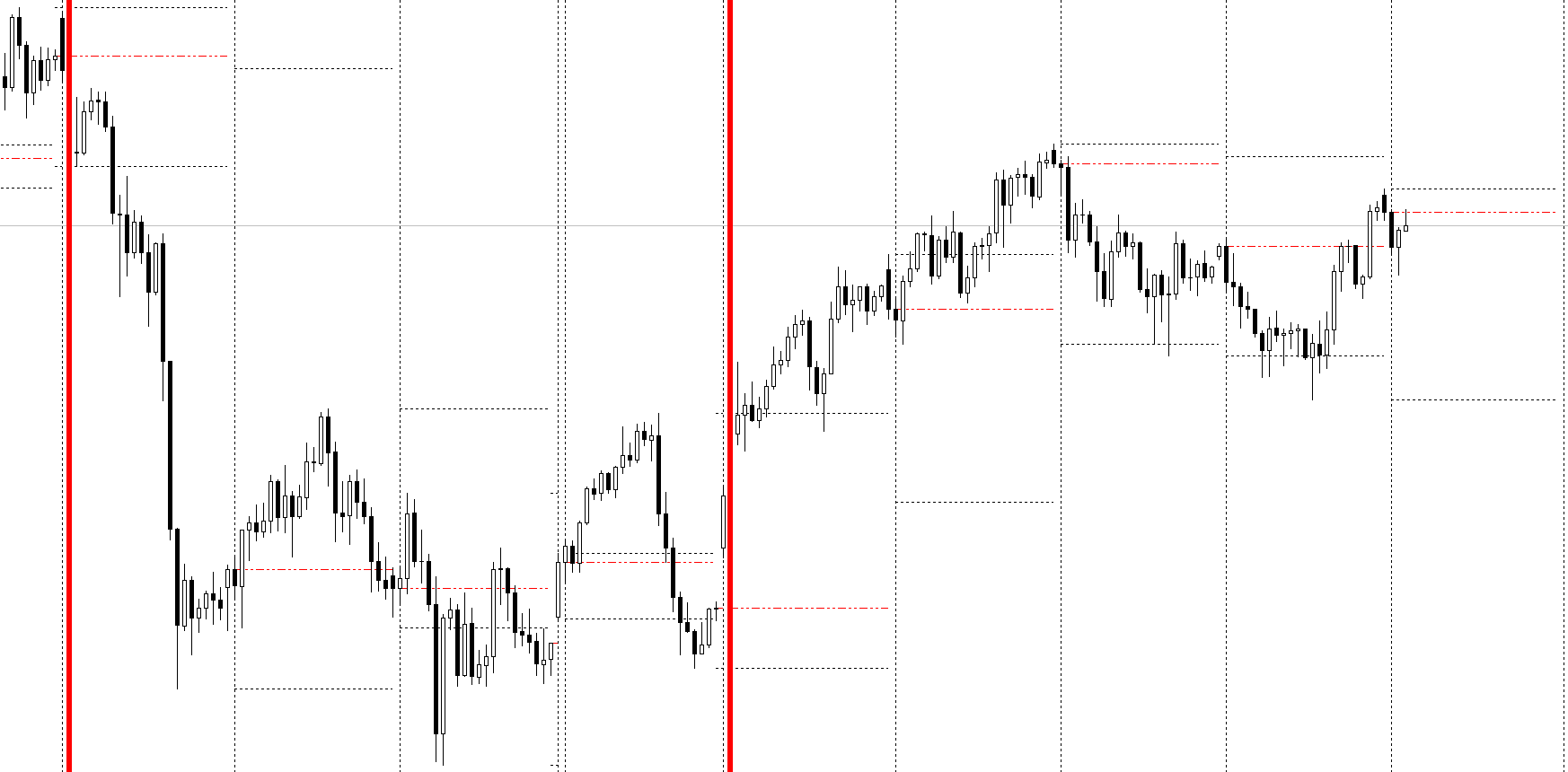 Automatically displays yesterday’s high, low & close, weekly high/low box, weekly separators, plus alerts on key level breaks.